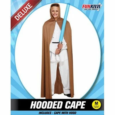 Child’s brown hooded cape, suitable for many themes including Space, Viking and Medieval.