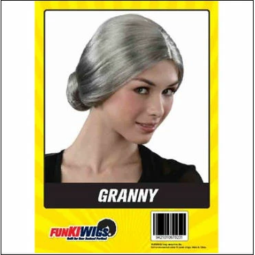 Granny wigs are popular for 100 Days of School. Grey Granny Wig with a bun at the back, suitable for old ladies and Mrs Claus.