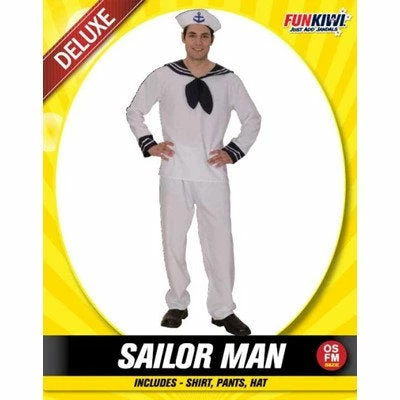 Get ready to sail away and ride the party wave with this Sailor man outfit.