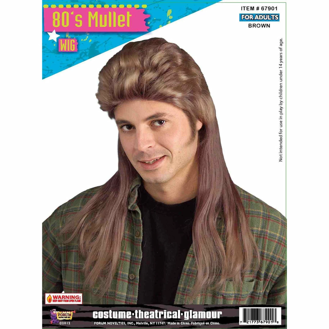 80’s Joe Dirt style long brown mullet wig, business at the front, party at the back.