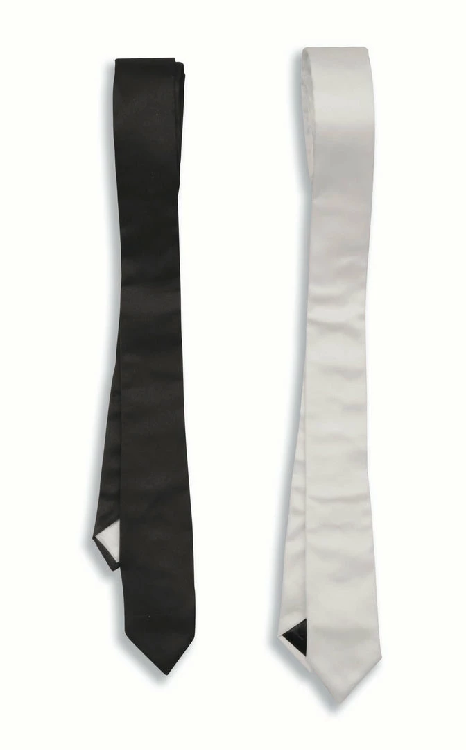 1950’s Skinny tie in black or white can be used for Gangsters, 1950’s, 1960’s, Mad Men and Blues Brothers.