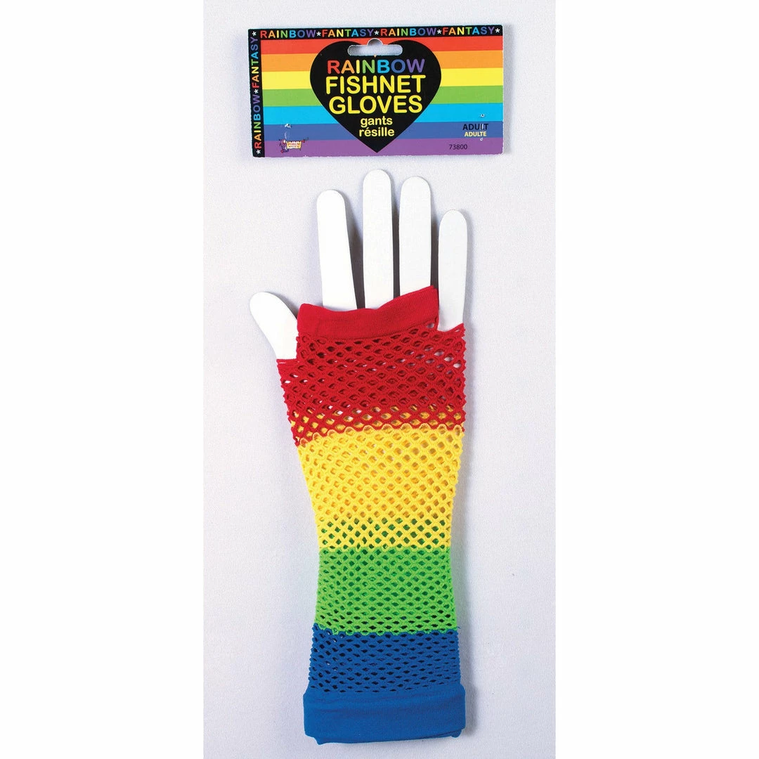These Rainbow Fishnet long gloves will add some finishing touches on your Gay Pride, 80’s, punk, fantasy, space age or futuristic costumes.