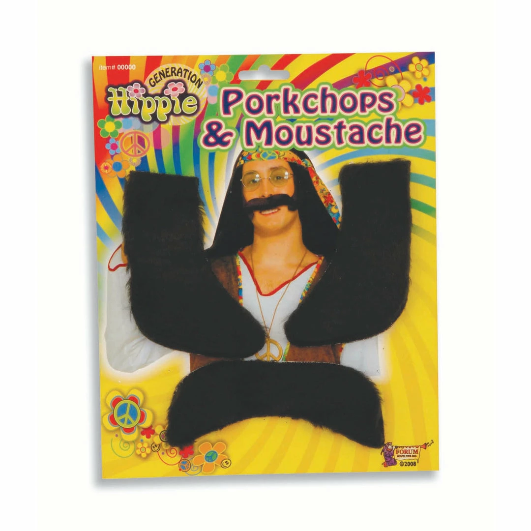 1960’s Hippie set includes black porkchops/side burns & moustache.