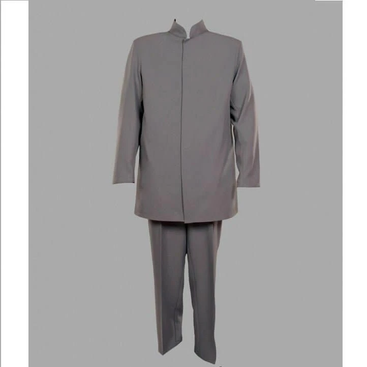 Costume includes grey jacket with mandarin collar and elastic waist pants.