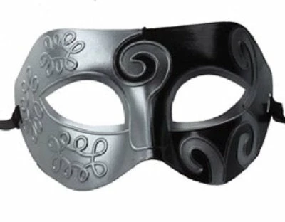 These antique Venetian eye mask is a half black, half silver with swirls for both men and women.