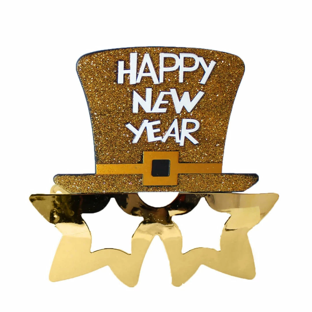 Happy New Year Top Hat Star Glasses – Gold or Silver