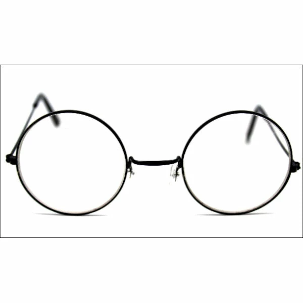 These Hippie Glasses, black rim with clear lenses suit many characters including 1960’s, Wizards and Old People.