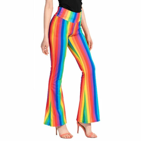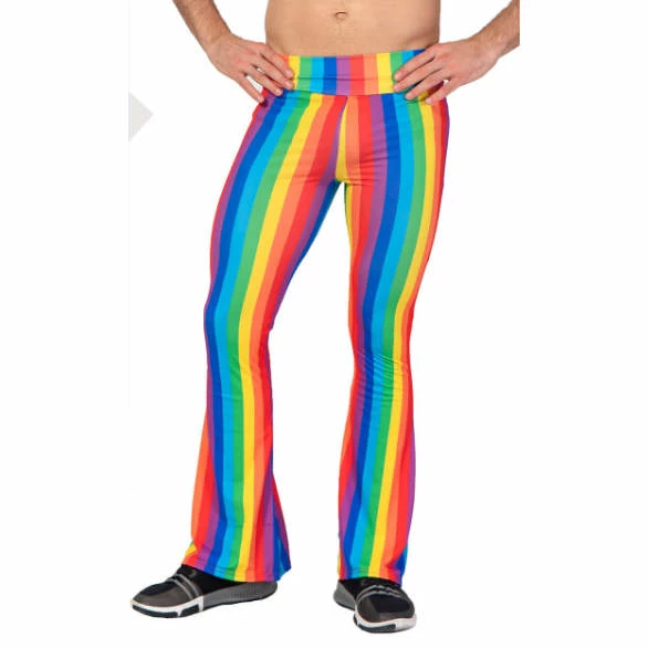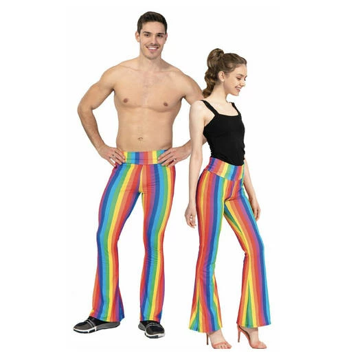 These Rainbow Stripe Flare Pants are unisex and perfect for your next Festival or Mardi Gras party.