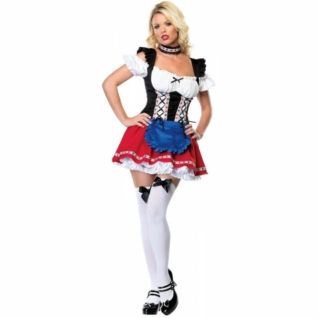 Peasant top apron dress with ribbon trim, matching choker and petticoat
