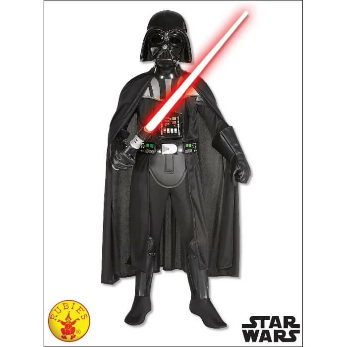 Ultimate villain of the original trilogy, Darth Vader was born Anakin Skywalker, a Jedi lured to the dark side by Palpatine. This iconic Lucas Film and Disney anti-hero of the Star Wars series, Darth is father to Luke and Leia and characterized by his black robes, cape, helmet and breathing device. Become the reigning Sith Lord of the Galactic Empire today – and may the force be with you. This costume is perfect for May the 4th Be With You.