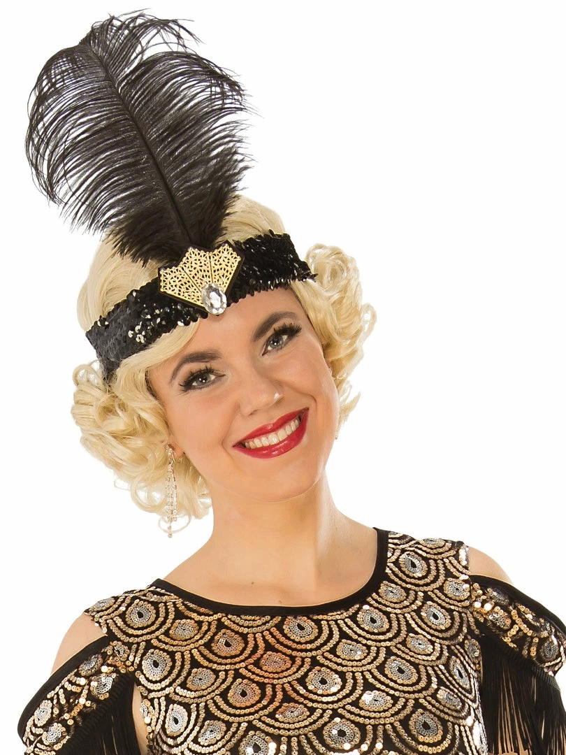 Gold Flapper Costume. The decades are the 20s and 30s and dance and fashion have found a new connection. Get that speak-easy feeling when you dress as a fabulous Flapper lady with the trademark feather headpiece, beads and tassled dress. Time to dance the Charleston and the Chattanooga Choo Choo as you jazz up the night.