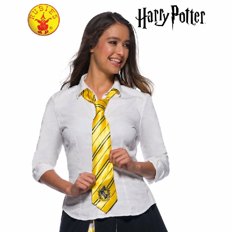 Hufflepuff Tie in yellow and black House at Hogwarts School of Witchcraft and Wizardry, in the famous Harry Potter series by author J K Rowling. Hufflepuff is known for its hard working, dedicated, patient, loyal and fair members and was founded by Welsh witch, Helga Hufflepuff. With a badger as its icon, famous members include Newt Scamander and Cedric Diggory. Novels in this series include Harry Potter and the Philosopher’s Stone, Harry Potter and the Chamber of Secrets, Harry Potter and the Prisoner of Azkaban, Harry Potter and the Goblet of Fire, Harry Potter and the Order of the Phoenix, Harry Potter and the Half Blood Prince and Harry Potter and the Deathly Hallows.