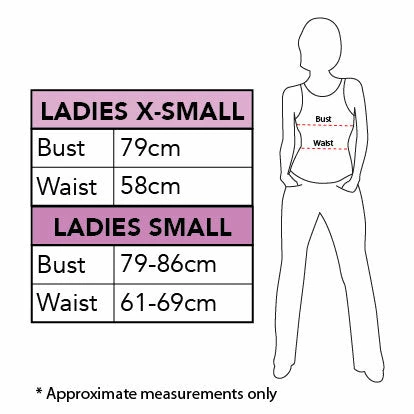 - XS (extra small) – ladies 8-10 – good for teens