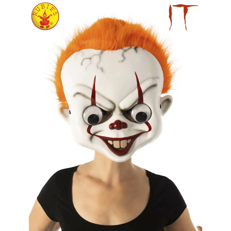- Injection Moulded Plastic Mask of Pennywise’s face with long-pile orange faux fur attached to top like hair