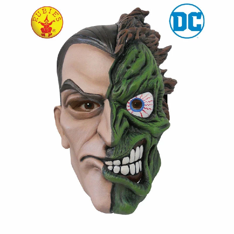 Two Face Mask. Scarred when Sal “Boss” Maroni threw acid at him, Harvey Dent turned from ally into one of Batman’s toughest opponents. The schizoid criminal mastermind is obsessed with opposites. See what happens when you flip his coin!