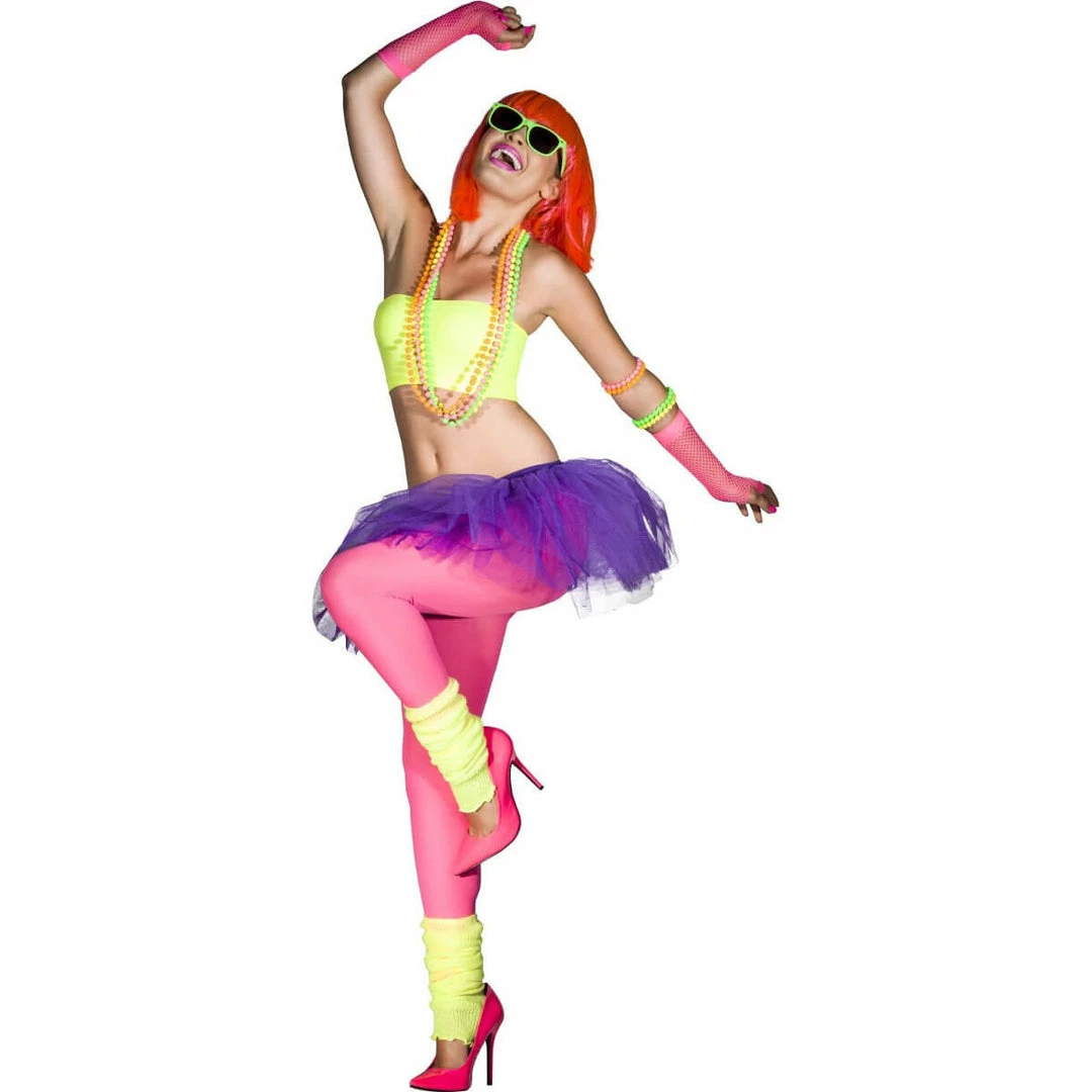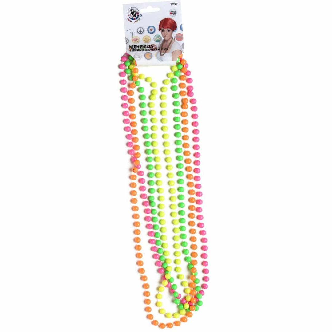 These 4 strands of Fluro Beads are a great accessory to complete your 80s theme costumes. Team with bracelets, fishnet gloves, leg warmers and 1980’s style wig.