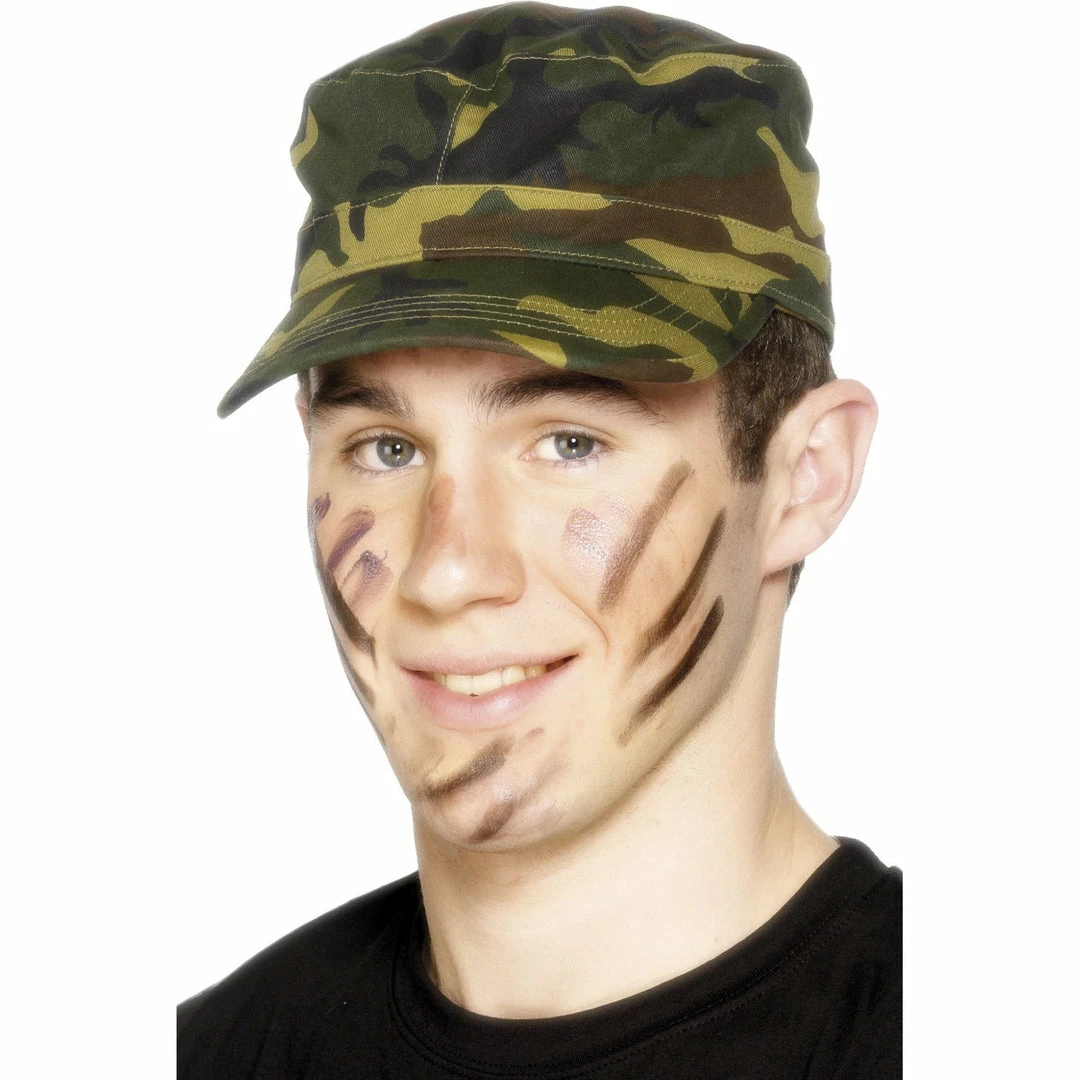 Camouflage Army Hat, adult size for men and women, add some face paint and weapons and you are ready to party.
