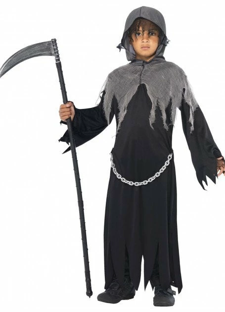 Be afraid, be very afraid! Smiffys kids boys grim reaper robe fancy dress costume will create some blood curdling screams this halloween! Complete this look by adding our horror masks or fx face and body paint. Have a spooktacular halloween!