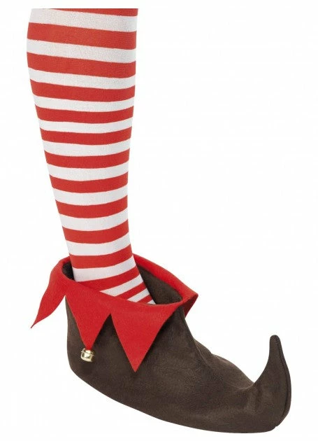 - Pair of brown Elf Shoes trimmed in red felt and topped off with bells.