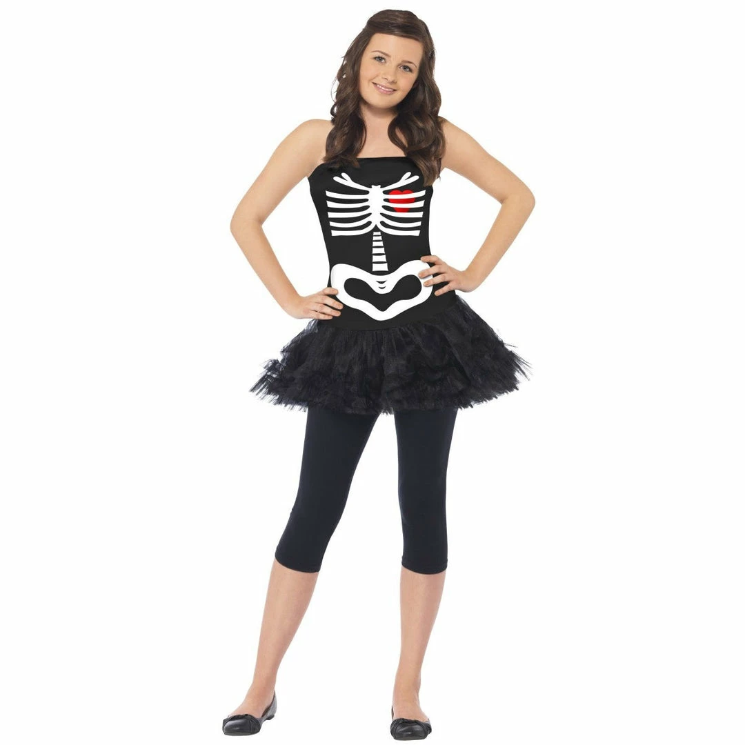 Girls Skeleton Tutu costume is a printed dress with attached tutu is a great option for Halloween.