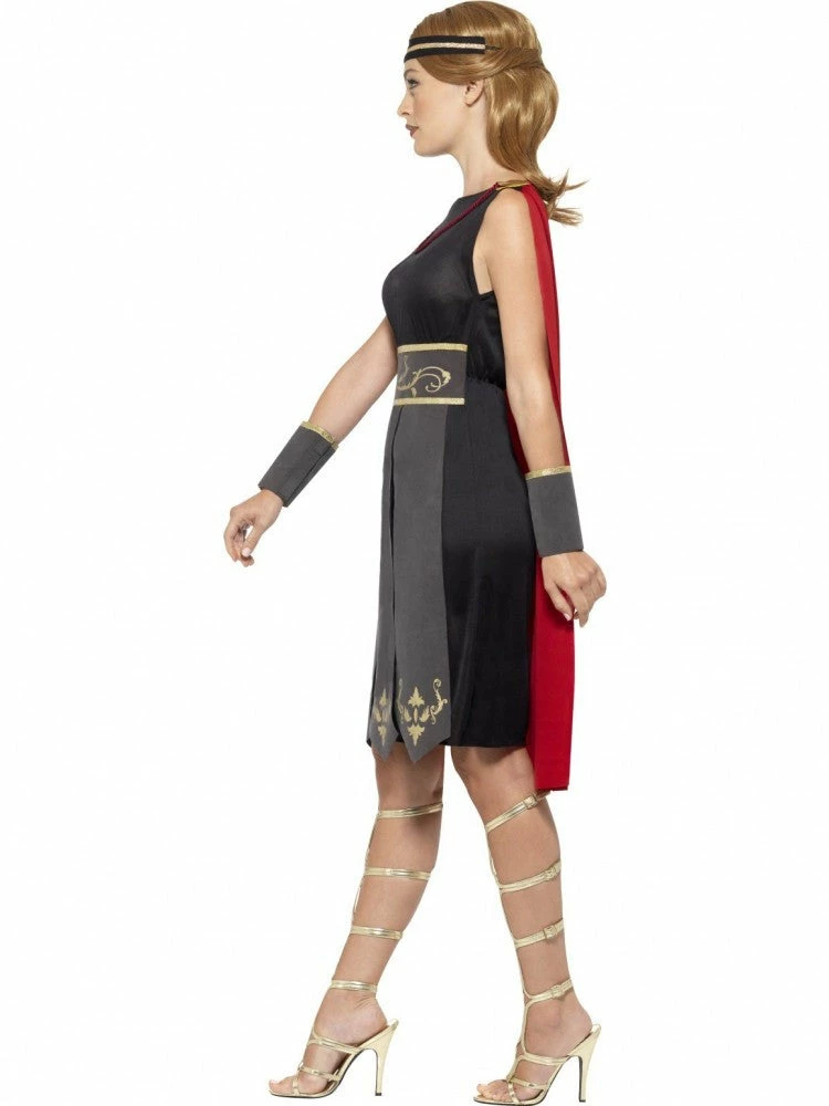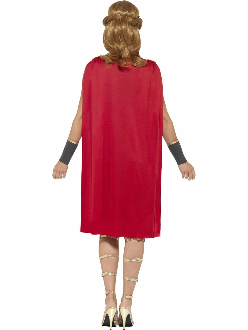 This Roman Warrior/Gladiator costume includes dress with attached cape, arm cuffs and headband.