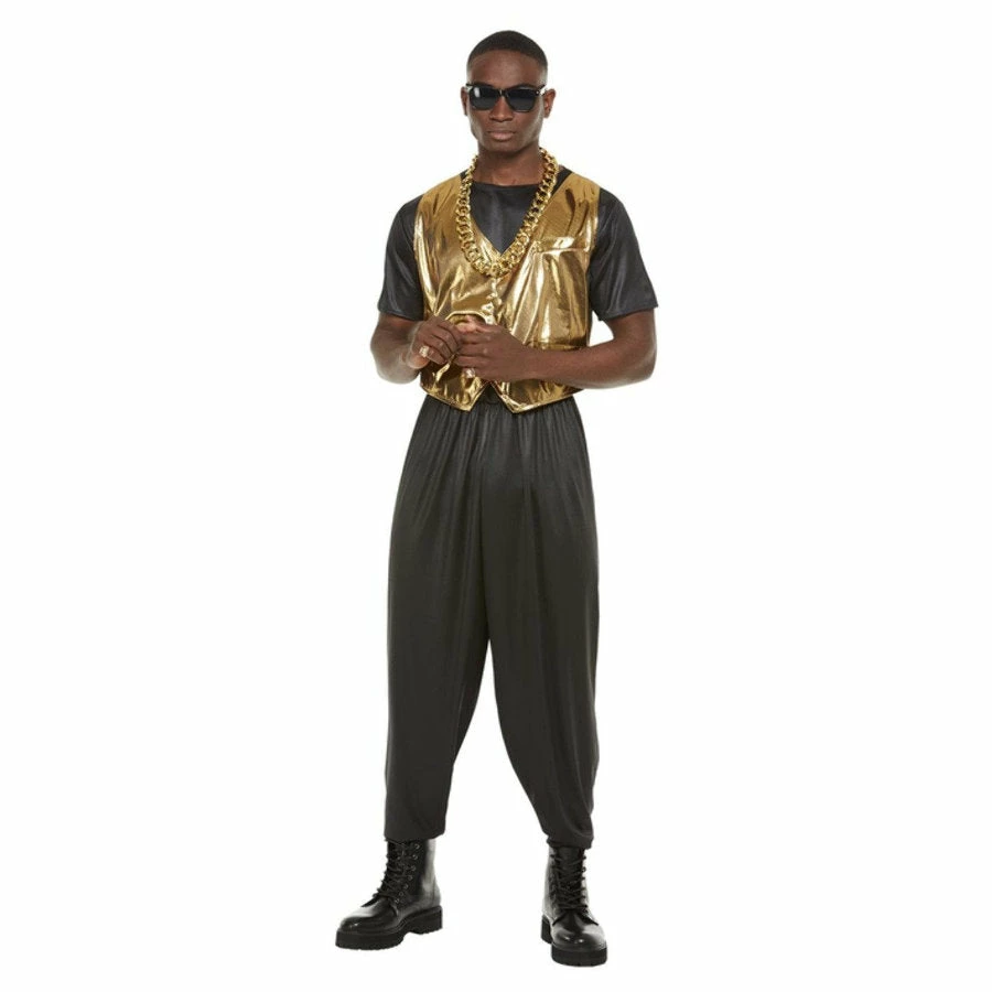 Hammer time! Get down and rappin’ as a funky music dude from the 80s in this 80s Hammer Time Adult Costume. Grab your gold chains, dark glasses and big attitude as you rap, break dance and cruise the night away as a rap idol. Perfect for decades parties and themed events.