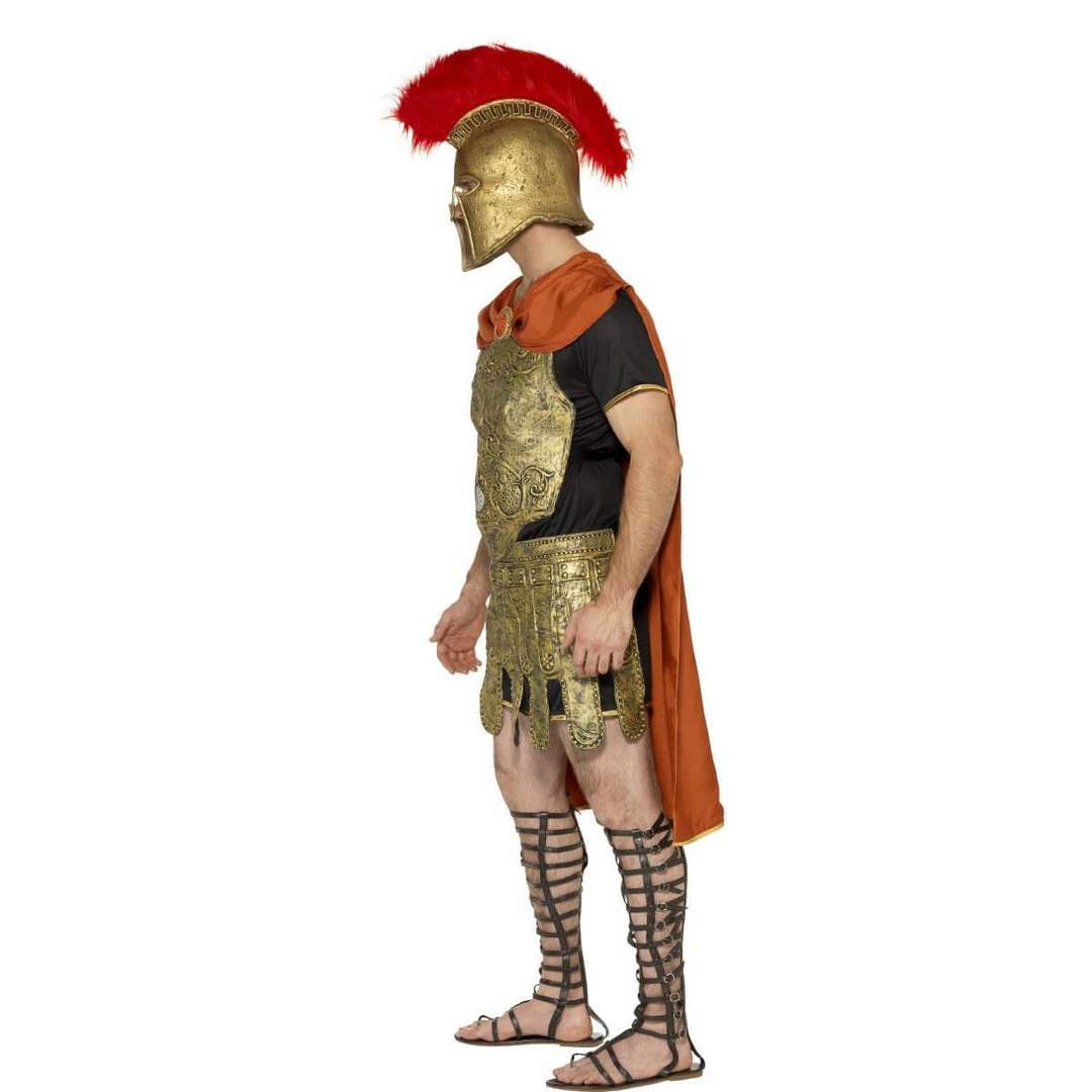 Roman Soldier costume includes, Tunic with Cape, antique gold look chest plate and Skirt.