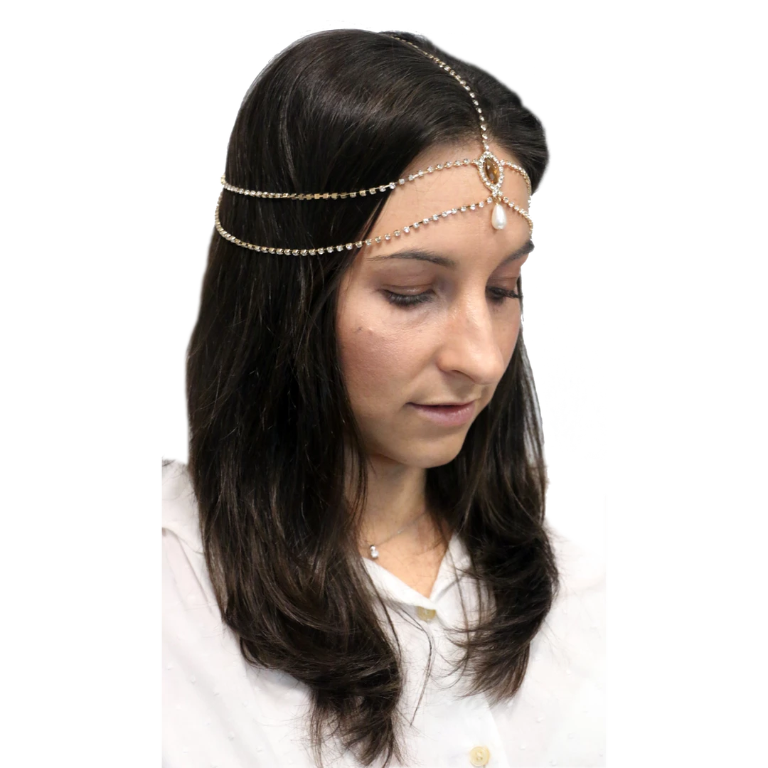 Our 1920’s Rose Gold Gatsby headband combines a delicate garnet coloured stone embellishment with a Rose Gold diamante head chain. This roaring 20’s inspired head chain commands the room.
