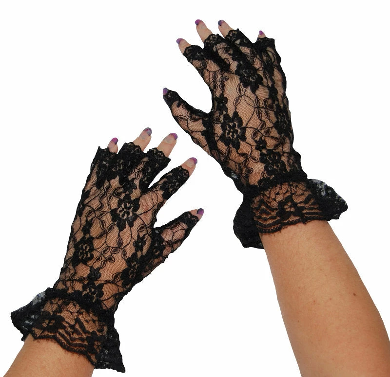 Complete your 80’s Madonna costume off with our short black lace finger less gloves.