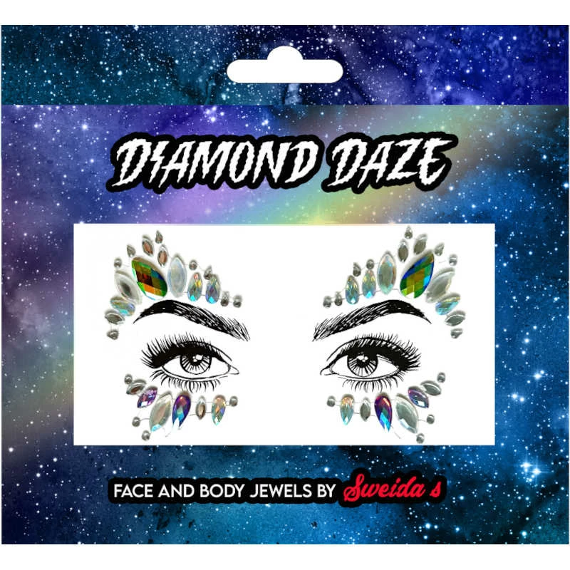 Pack Includes one set of reusable Face Jewels, simply peel and stick. Can be reapplied with Eyelash Glue or Spirit gum.