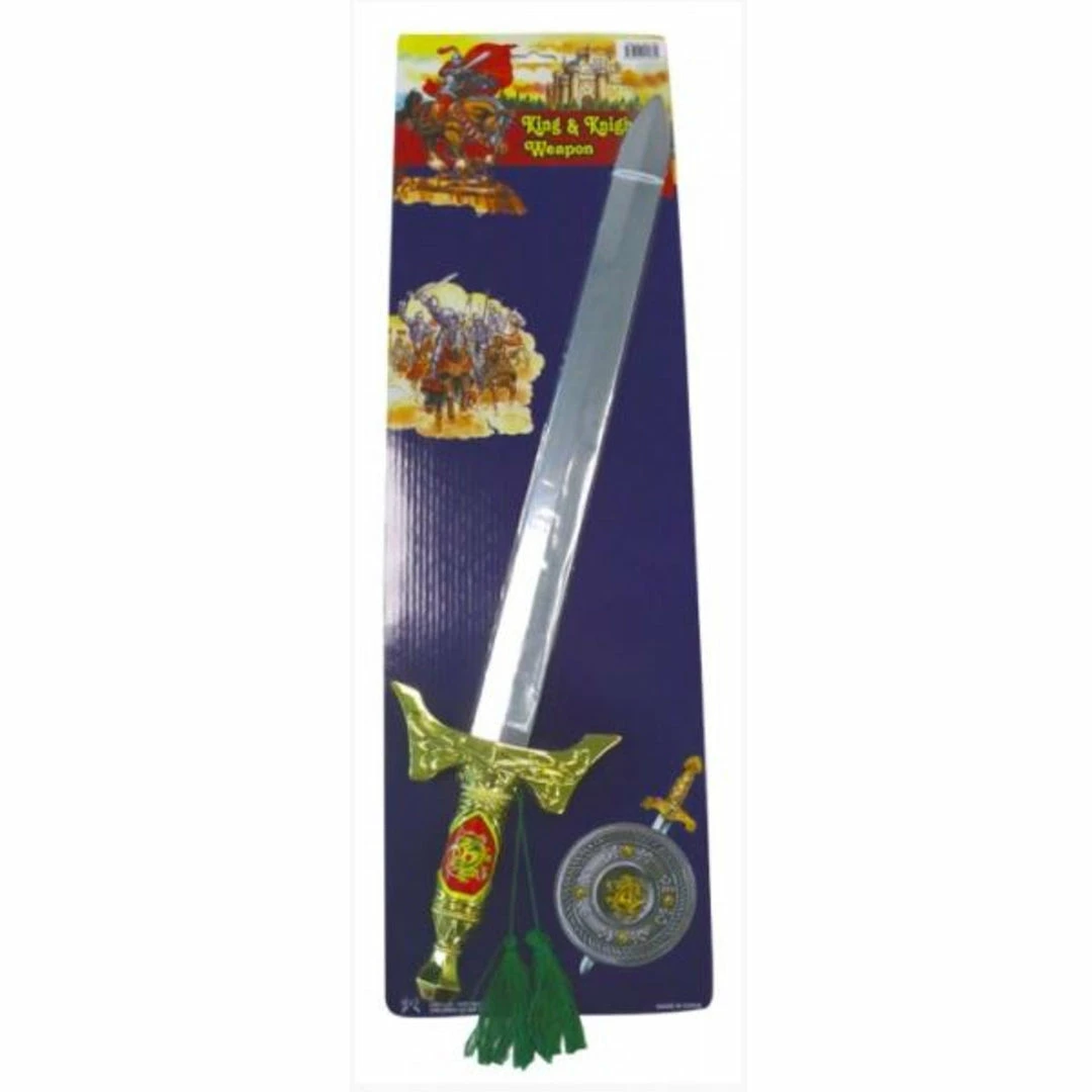 Take on dragons, monsters and fight dark knights with this realistic looking shiny bladed knight sword!! This sword features a metallic gold handle with a dragon coat of arms, a metallic sliver blade, and either a Green or a Red tassel on the handle!!