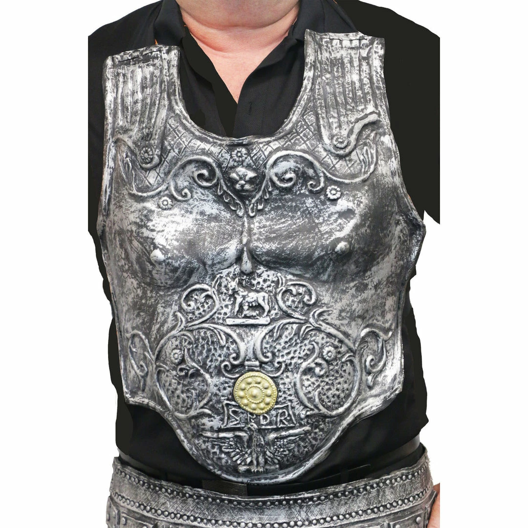 Silver latex Roman Gladiator Breast Plate which ties at the neck and back, perfect to complete your Roman costume.