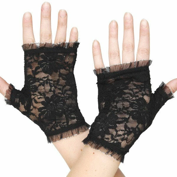 Black fingerless lace gloves are a great accessory for your 1980’s Prom Dress, Madonna, Cindi Lauper or Halloween costume.