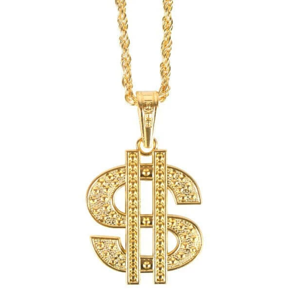 Gold Dollar Sign Pendant Necklace will bling up your Pimp or Rapper costume.