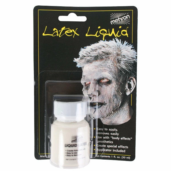 The uses for Mehron’s Latex Liquid in clear are only limited by the imagination of the artist using it. Special Effects Artists throughout the world use Latex Liquid to create fake skin, wrinkles, alien features and even to apply Crepe Hair and theatrical prosthetics. This 1 oz bottle of Latex Liquid comes with a brush for easy application. Creating a Character is a easy task when you use the tools, accessories and makeup used by the Professional Makeup Artist. You can now buy the same high quality Latex Liquid made by Mehron, Leaders in Theatrical Makeup since 1927, that the professionals use throughout the world on movie sets, video shoots and stage performances.