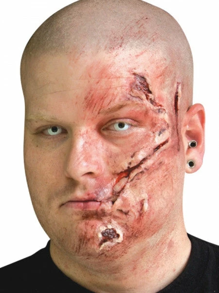 Extra Flesh is a wax compound mixed with fibrous material that can be reused many times. Fixative “A” is a clear liquid plastic sealer that forms a protective film over the Extra Flesh and is used before makeup is applied.