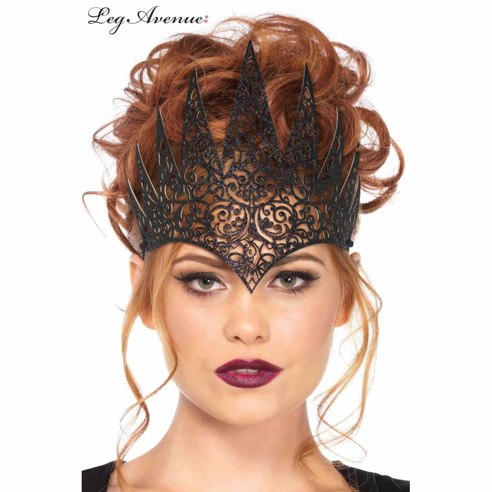 Die cut foam with black glitter overlay with a high top design by Leg Avenue. You will feel like a princess wearing this beautiful black glitter Crown.