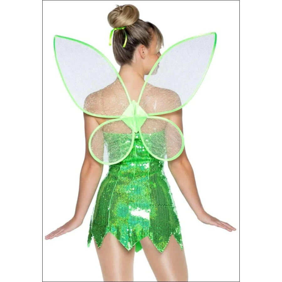 No pixie dust needed to transform into the most fashionable fairy of all with the Leg Avenue 6-Piece Green Fairy Costume Set. This tantalizing Tink-inspired costume kit features a sequin dress, shorts, fairy wings, hair ribbon and shoe pom poms.Â