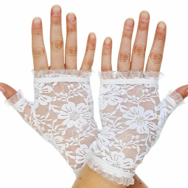 White fingerless lace gloves are a great accessory for your 1980’s Prom Dress, Madonna, Cindi Lauper or Halloween costume.
