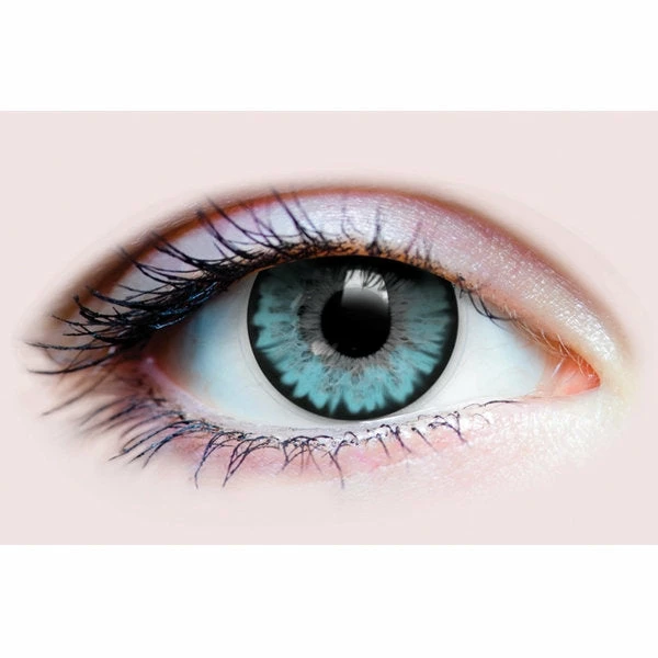 On light natural eyes, these beauty lenses deliver a bright aqua punch that’s highlighted by the contrast with the dark outer ring.
