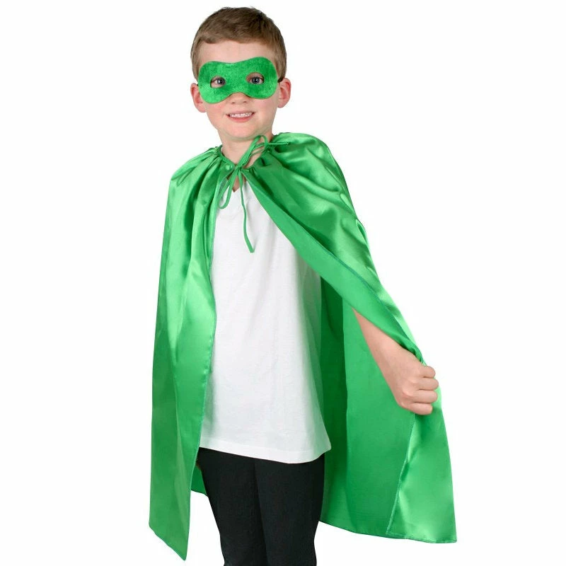 Want to save the world with this Super Hero satin cape and eye mask for children. Available in a green and red.