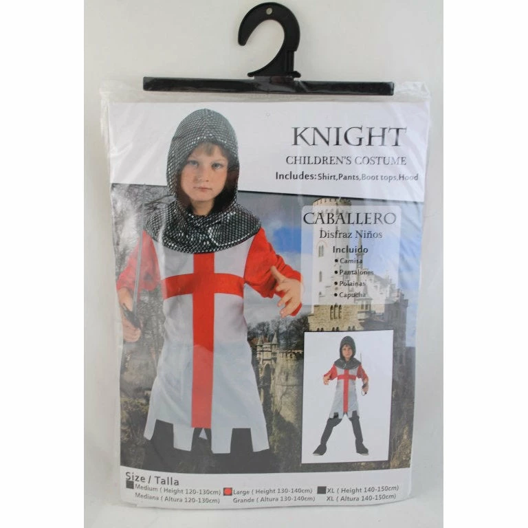 Knight Boy costume includes shirt, pants, boot tops and hood.