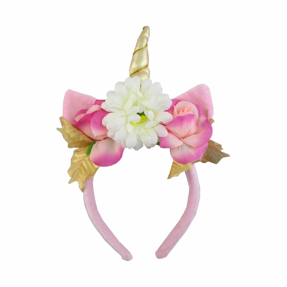 Pink Unicorn headband with flowers & gold horn is suitable for adults and children.